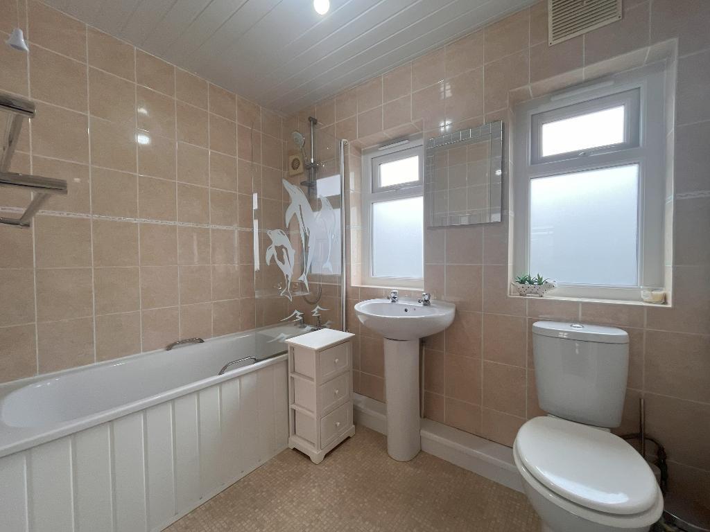 7' 9'' x 5' 5'' (2.38m x 1.67m) Two uPVC double glazed frosted glass windows with openers to rear elevation. Three-piece suite comprising of a low flush WC, pedestal hand wash basin and a twin grip bath with mains pressure shower over. Tiled full height to all walls. Central heating radiator. Wall mounted extractor. Ceiling light point.