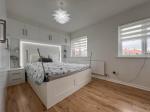 13' 11'' x 10' 4'' (4.25m x 3.17m) Two uPVC double glazed windows with openers and fitted roller blinds to front elevation. Range of fitted bedroom furniture comprising wardrobes, overhead storage and beside tables with glass shelving. Central heating radiator. Power points. Complimentary headboard lighting. Ceiling light point.
