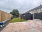 Garden is laid to a flag paved patio area allowing seating with the remainder being laid to lawn. Fully enclosed by timber fence panelling with stone pillars. Wall mounted satellite dish. Timber shed.