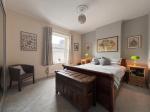 14' 9'' x 12' 4'' (4.5m x 3.76m) uPVC double glazed window with opener and fitted vertical blind to front elevation. Tiled fire surround and hearth. Two alcove storage cupboards with shelving above. Central heating radiator. Hard wired for sky television. Aerial point. Power points (some with USB input). Decorative ceiling rose with light point. Picture rail. Original coving.